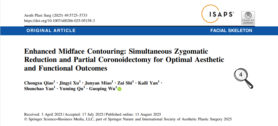 随着社会对美学追求的提升与医疗技术的飞速发展,面部轮廓整形手术已成为亚洲地区,尤其是东亚文化圈中备受关注的美容外科领域。近期,吴国平教授团队一系列聚焦于下颌角与颧骨整形术式创新、疗效评估及影响因素的高水平研究相继发表,从不同维度揭示了该领域在精准化、个性化与安全性方面取得的重要进展。本文将对这四项研究进行综合解读,展现当代面部轮廓整形术的发展脉络与未来方向。