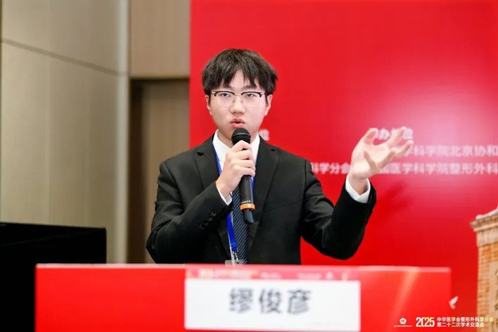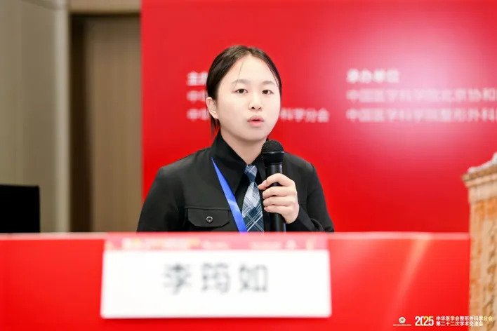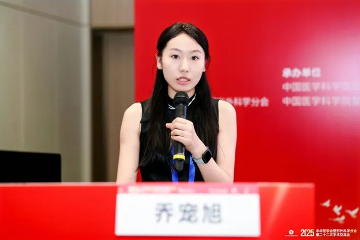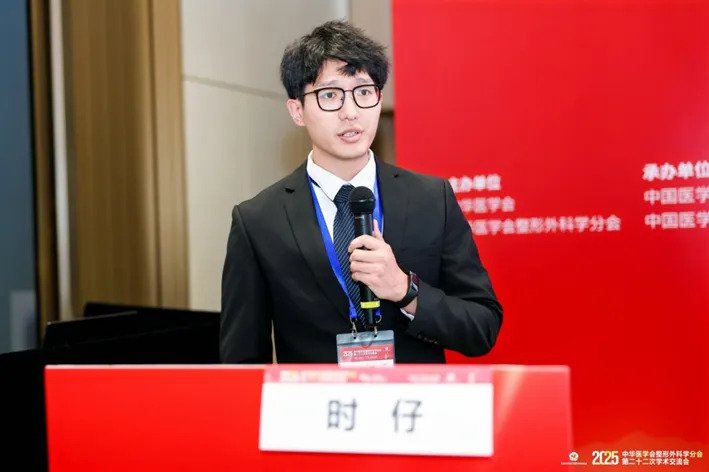 在乳房整形分会场,研究生乔宠旭还汇报了吴国平主任医师团队在隆乳修复领域的创新方法《包膜前腔隙假体重置矫正隆乳术后假体移位的临床效果》,提出更简便、有效的假体移位修复策略,引起与会专家的浓厚兴趣。